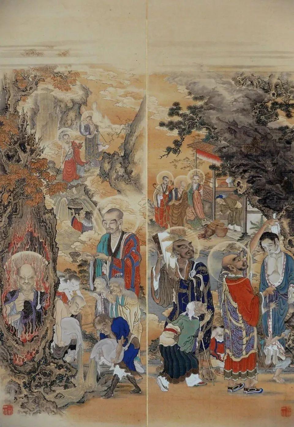 狩野一信的《五百罗汉图》,19世纪江户时代