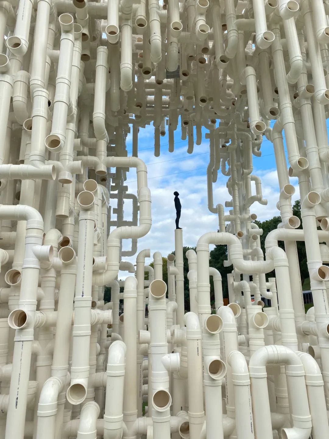 比想象中要好玩,被评为当代最有趣的雕塑艺术家彼德·德梅兹贴心设置了打卡点:一个秃顶的阳刚男人站在敞开的门面前,门内空间形成一个互动拍照区。